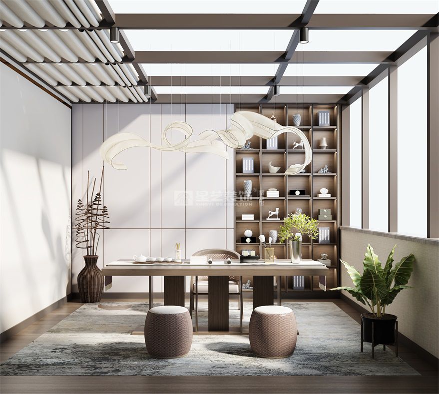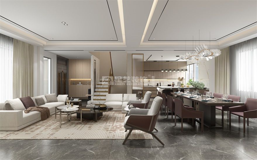 本案是輕奢別墅會所。空間相對比較多。一層主要是客餐廳,會客位置和展示;二層是書房,臥室。三層主要是花園和茶室,整體空間豪華大氣,溫馨典雅,即有現代時尚元素的打造,又有輕奢風格的高貴、樸實和品味