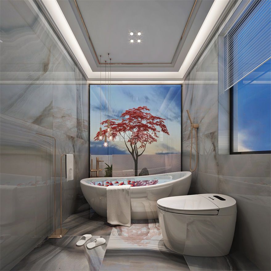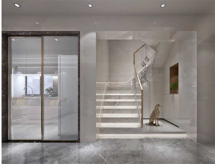 整體立面形式以線型勾勒出空間的立體感,樓梯位置也做了流水燈與跑馬燈的形式融入,既簡(jiǎn)潔了上樓開(kāi)燈的繁瑣,也營(yíng)造出了更好的樓梯間氛圍感,主衛(wèi)正面做了大塊清玻璃作為采光與采景,既增加了空間的通透性,還能與自然景觀融合,也為露臺(tái)花園提升了價(jià)值。
