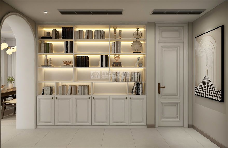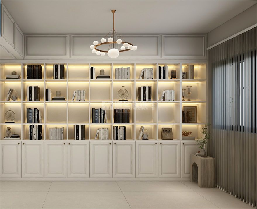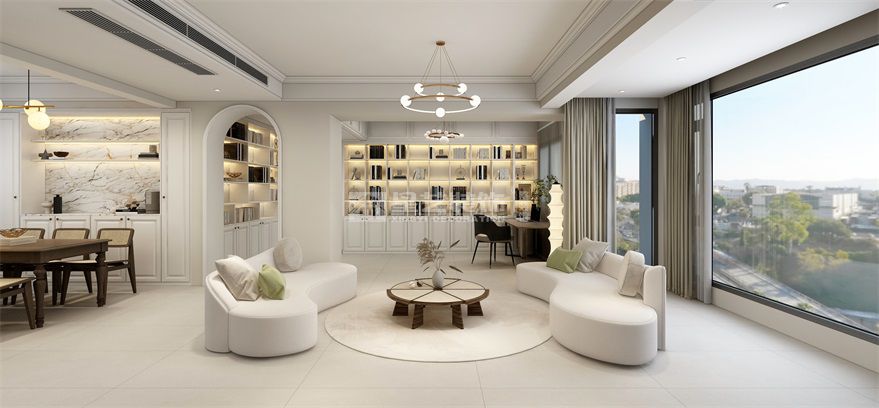 本案設(shè)計師圍繞客戶極簡需求,打造出一個極簡整體閱讀空間。同時,圍繞動線、明亮等主題。借助空間設(shè)計在書海自由飛翔,非盲目寄托他人或事物,亦可自給自足的情感不同尋常的浪漫。
