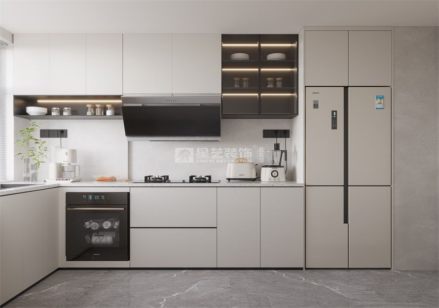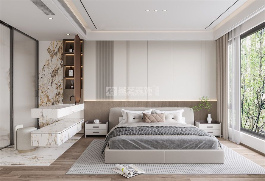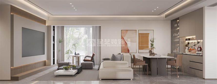 客戶希望封窗,原陽臺區域作為品茶區,空間內裸露梁位太多,需要用一些天花來做修飾,運用石材與木紋的搭配,體現出自然與溫馨的家庭氛圍空間