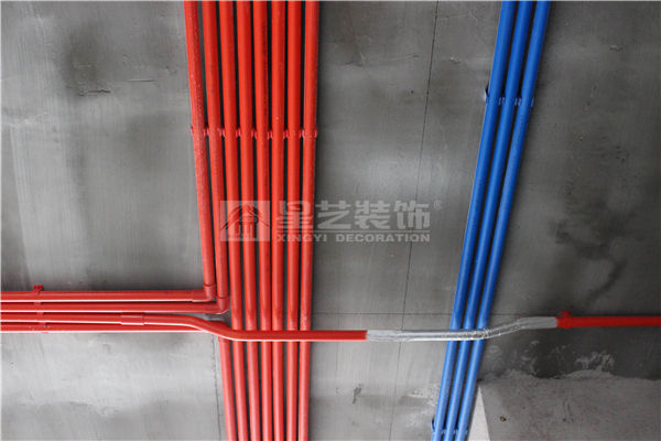 A、PVC管線分紅、藍二種顏色,紅色為強電管,藍色為弱電管,